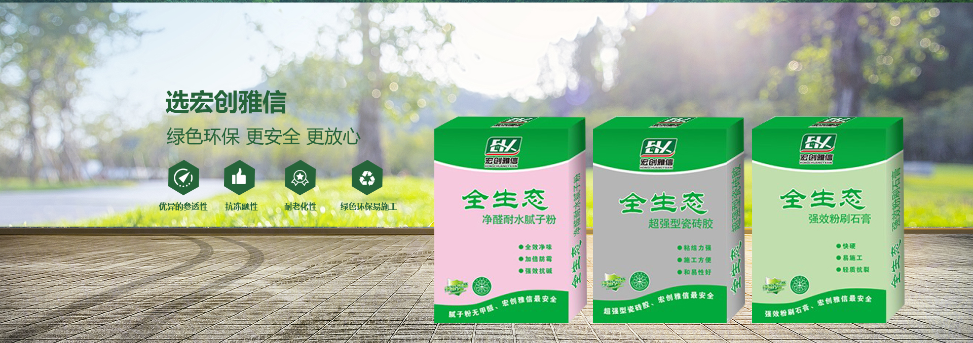 宏創(chuàng)雅信裝飾材料北京有限公司(威海分公司)是一家生產(chǎn),研發(fā),運(yùn)輸,施工綜合性股份制企業(yè),主要產(chǎn)品:快粘粉、嵌縫石膏、內(nèi)外墻耐水膩?zhàn)臃?、?nèi)墻超細(xì)膩?zhàn)臃?、高?qiáng)石膏、粉刷石膏、瓷磚粘接劑、填縫劑、內(nèi)外墻防水涂料、108膠、聚合物粘接砂漿、聚合物抗裂抹面砂漿、灰鈣、重質(zhì)碳酸鈣、砌筑砂漿、膠粉聚苯顆粒、浮雕骨料、玻化微珠保溫砂漿、FTC相變節(jié)能保溫砂漿、SF增水保溫砂漿、等產(chǎn)品。